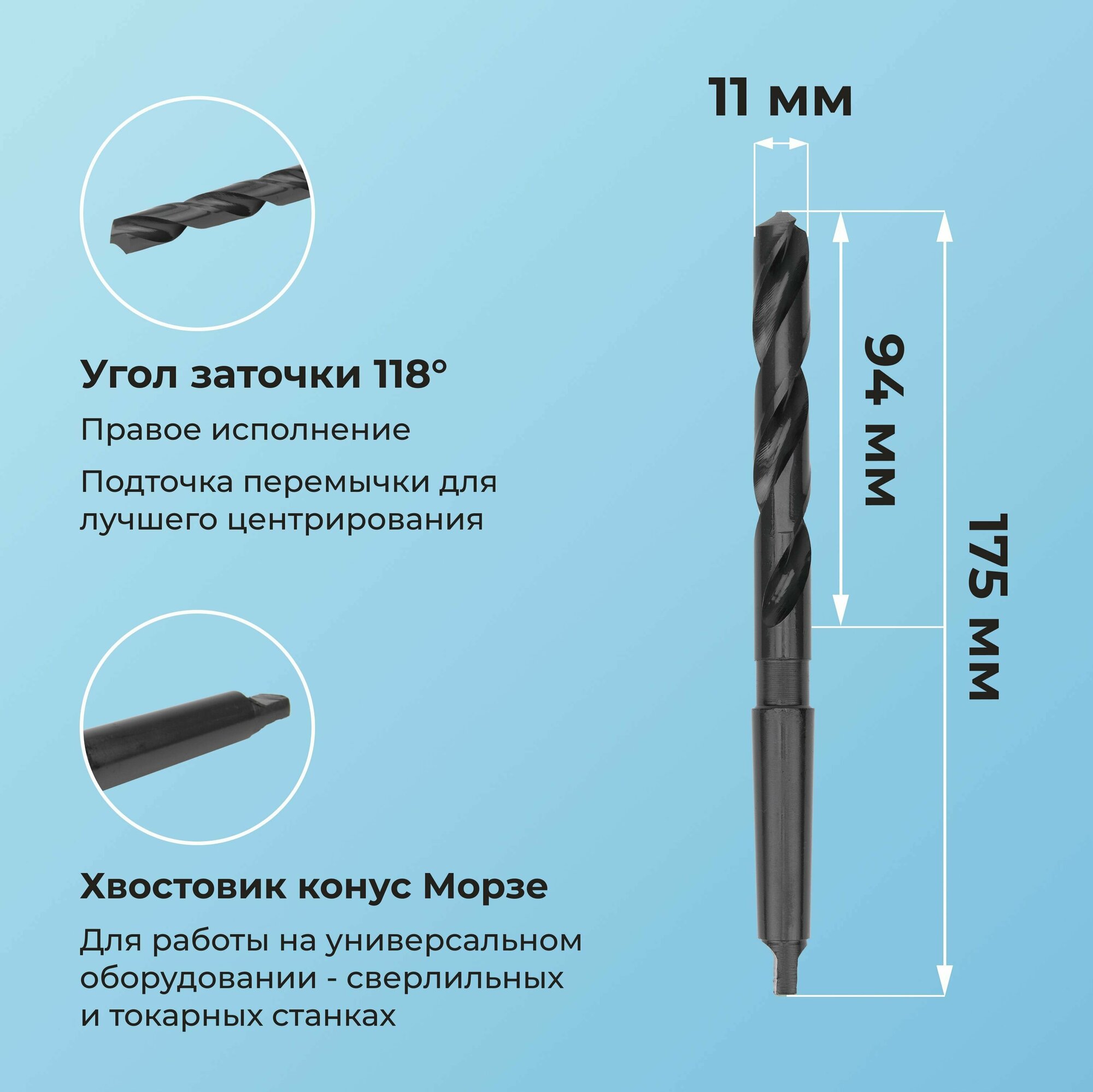 Купить Сверло по металлу 11 мм NORGAU Industrial спиральное HSS фрезерованное с хвостовиком-конус Морзе, правое, DIN 345 с доставкой по всей России.