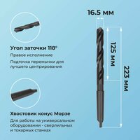 Сверло по металлу 16.5 мм NORGAU Industrial спиральное HSS фрезерованное с хвостовиком-конус Морзе, правое, DIN 345: сравнение цен, характеристики, фото, актуальное наличие и цены.
