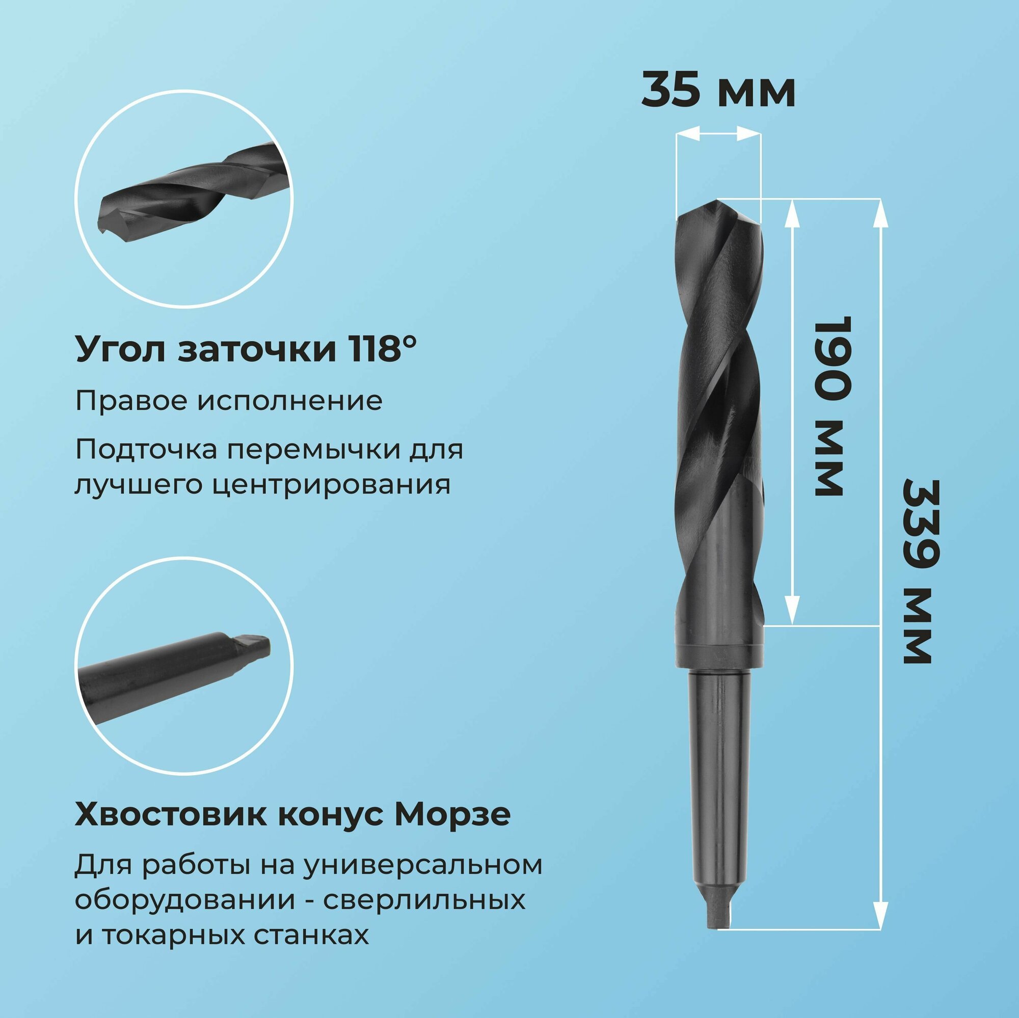 Купить Сверло по металлу 35 мм NORGAU Industrial спиральное HSS фрезерованное с хвостовиком-конус Морзе, правое, DIN 345 с доставкой по всей России.