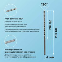Сверло по металлу 4 мм NORGAU Industrial из быстрорежущей HSS-E (Co5%) стали, удлиненное, тип VA правое, DIN 340: сравнение цен, характеристики, фото, актуальное наличие и цены.