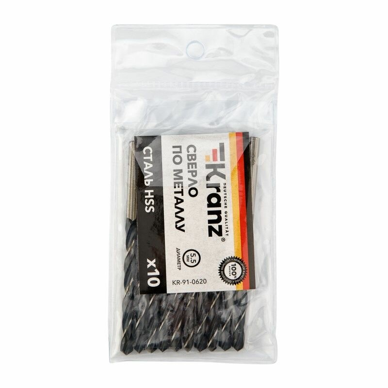 Сверло по металлу 5,5х93х57мм (HSS), DIN 338, 10 шт. в упаковке KRANZ