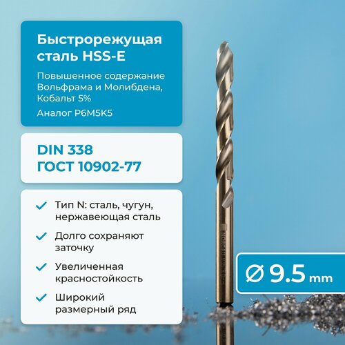 Купить Сверло по металлу 9.5 мм NORGAU Industrial из HSS спиральное со шлифованным профилем и подточкой перемычки по DIN 1412-С, с доставкой по всей России. Сверло по металлу 9.5 мм NORGAU Industrial из HSS спиральное со шлифованным профилем и подточкой перемычки по DIN 1412-С,: сравнение цен, характеристики, фото, актуальное наличие и цены.