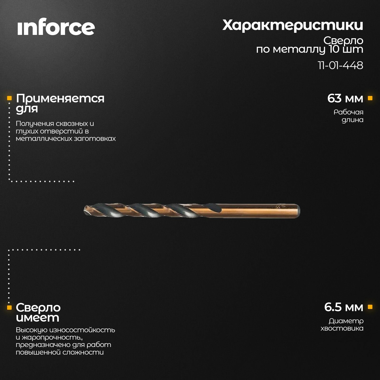 Купить Сверло по металлу HSS-CO (10 шт/уп; 6.5x101x63 мм) Inforce 11-01-448 с доставкой по всей России. Сверло по металлу HSS-CO (10 шт/уп; 6.5x101x63 мм) Inforce 11-01-448: сравнение цен, характеристики, фото, актуальное наличие и цены.