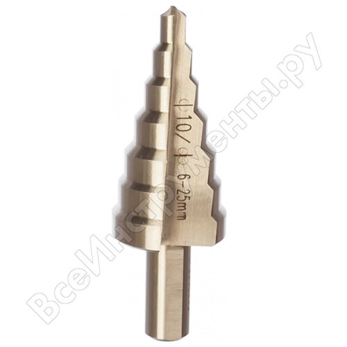 Параметры: Количество ступеней 7 шт; Диаметр ступеней 6; 9; 12; 16; 20; 22.5; 25 мм; Ход 4.5 мм; Диаметр хвостовика 10 мм.
