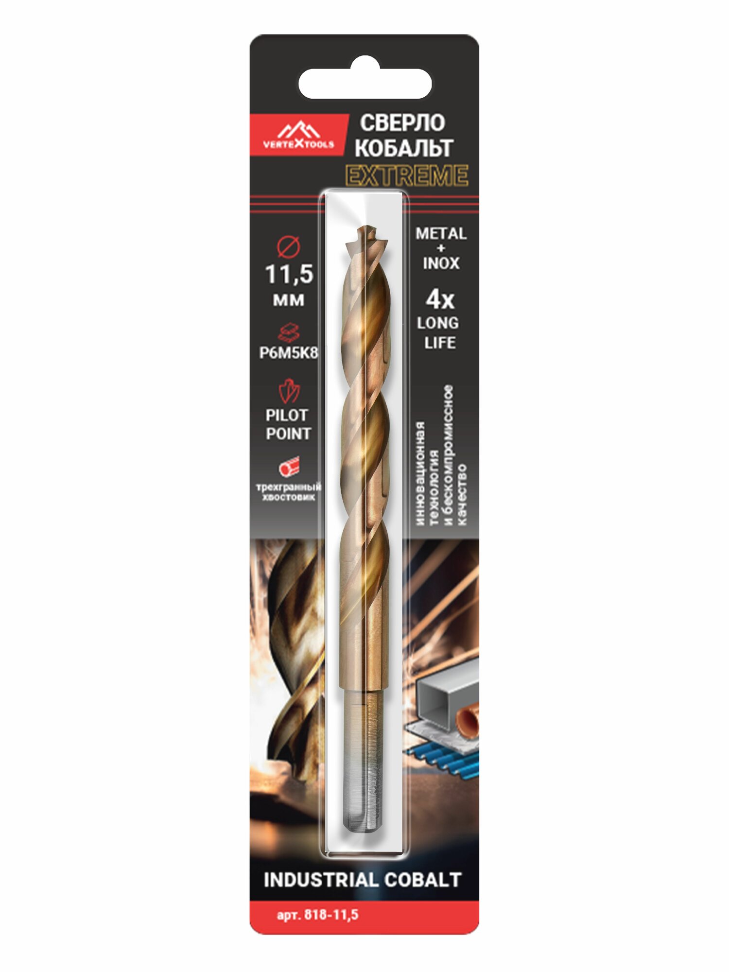 Сверло по металлу VERTEXTOOLS cobalt р6м5к8 11,5 мм