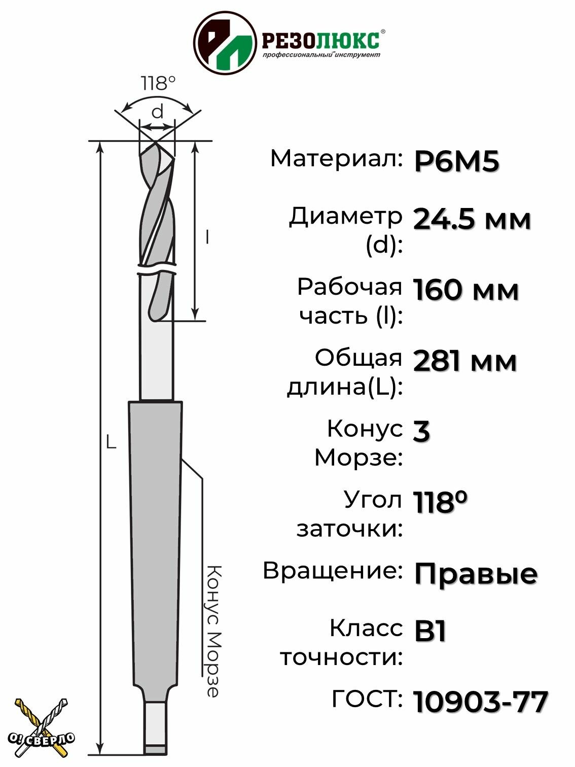 Сверло по металлу 24,5 мм — конический хвостовик КМ3, HSS, Р6М5, для станков, резолюкс: сравнение цен, характеристики, фото, актуальное наличие и цены.