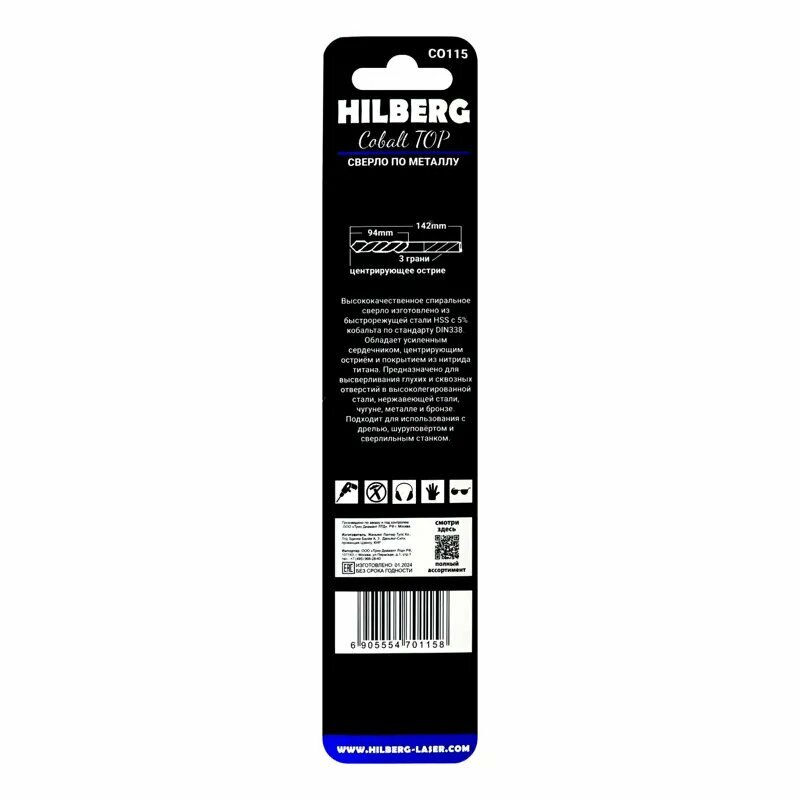 Сверло спиральное по металлу HSS Hilberg CO115 11.5×142 мм: сравнение цен, характеристики, фото, актуальное наличие и цены.