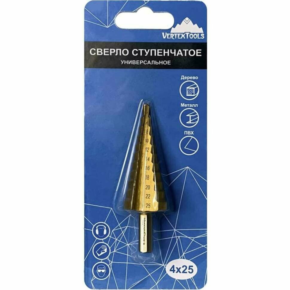 Купить Сверло ступенчатое 4-25 мм, 11 ступеней vertextools 4-25 с доставкой по всей России.