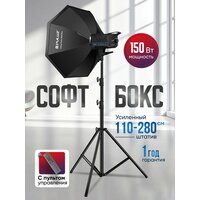 Свет для съемки, складной софтбокс восьмиугольный 95 см Puluz со штативом высотой 2,8 м. и светодиодным осветителем 150W 2700K-6500K и пультом управления: сравнение цен, характеристики, фото, актуальное наличие и цены.