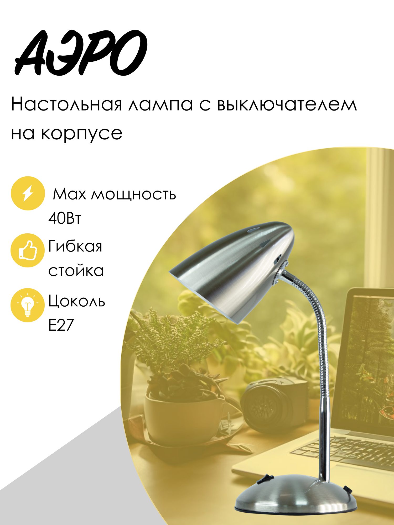 Светильник «Аэро» на подставке с никелированным сатиновым покрытием 220В/50Гц, цоколь Е27: сравнение цен, характеристики, фото, актуальное наличие и цены.