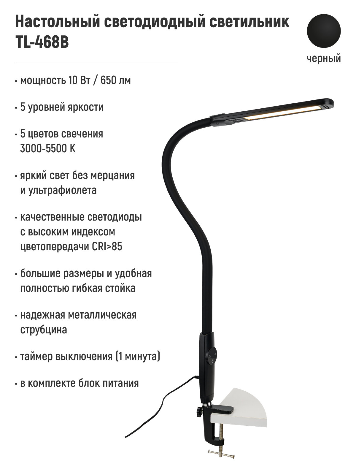 Светильник, ARTSTYLE, TL-468B, черный (светодиодный настольный светильник, 10Вт, на струбцине, димм.): сравнение цен, характеристики, фото, актуальное наличие и цены.