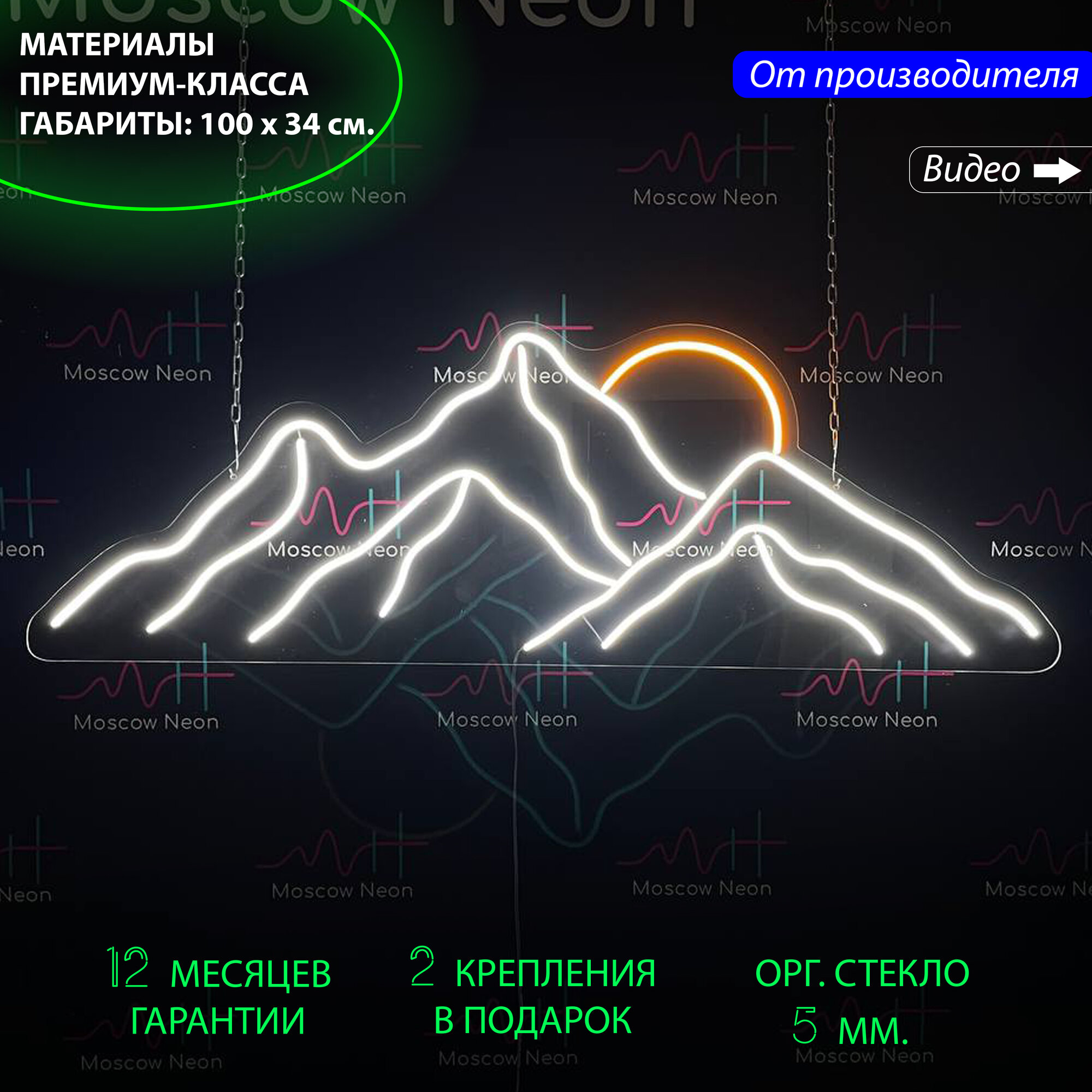 Светильник декоративный, неоновая вывеска Горы и солнце, 100 х 34 см.: сравнение цен, характеристики, фото, актуальное наличие и цены.