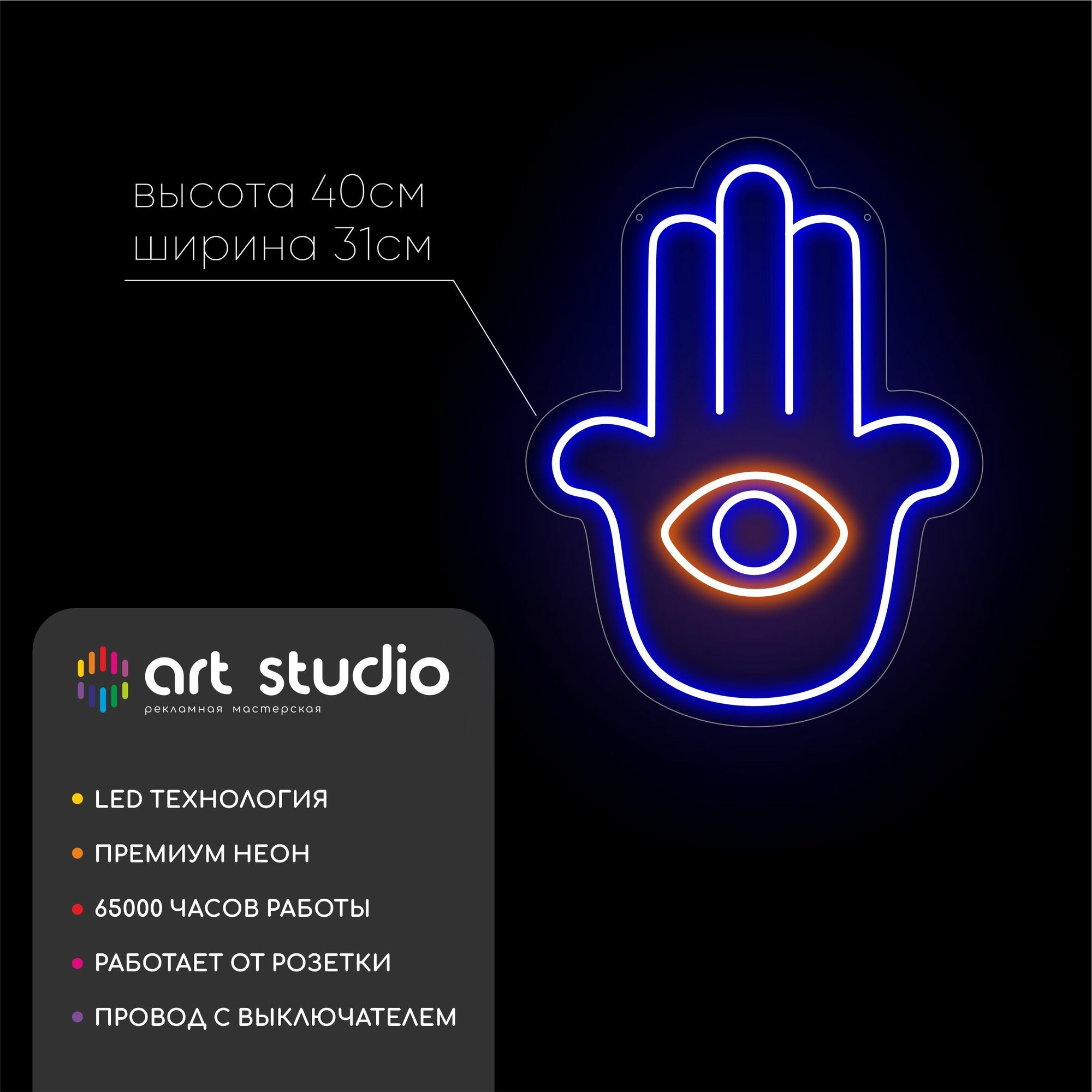 ART Studio Неоновая вывеска Хамса 40х31 см для декора дома и защиты от сглаза на подложке из акрила: сравнение цен, характеристики, фото, актуальное наличие и цены.