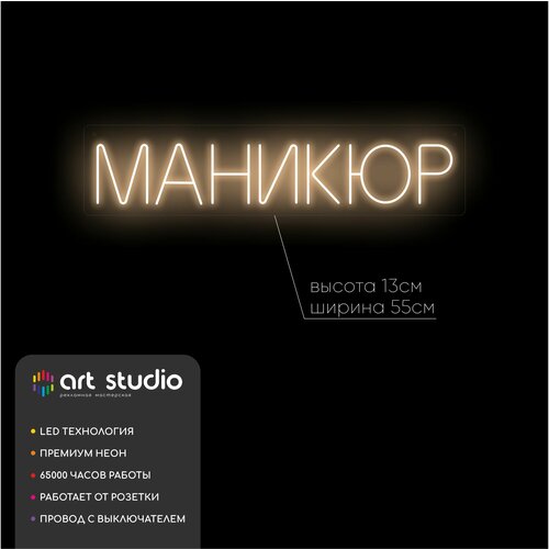 Неоновая вывеска "Маникюр" — минималистичное и эффектное решение для оформления кабинета мастера, студии ногтевого сервиса или витрины салона красоты. Световая надпись не только привлекает внимание клиентов, но и усиливает восприятие бренда: чётко, эстетично, стильно.
