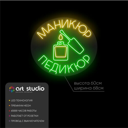 ART Studio Неоновая вывеска Маникюр и педикюр 60х68 см для салона красоты и нейл-студии на подложке из акрила: сравнение цен, характеристики, фото, актуальное наличие и цены.
