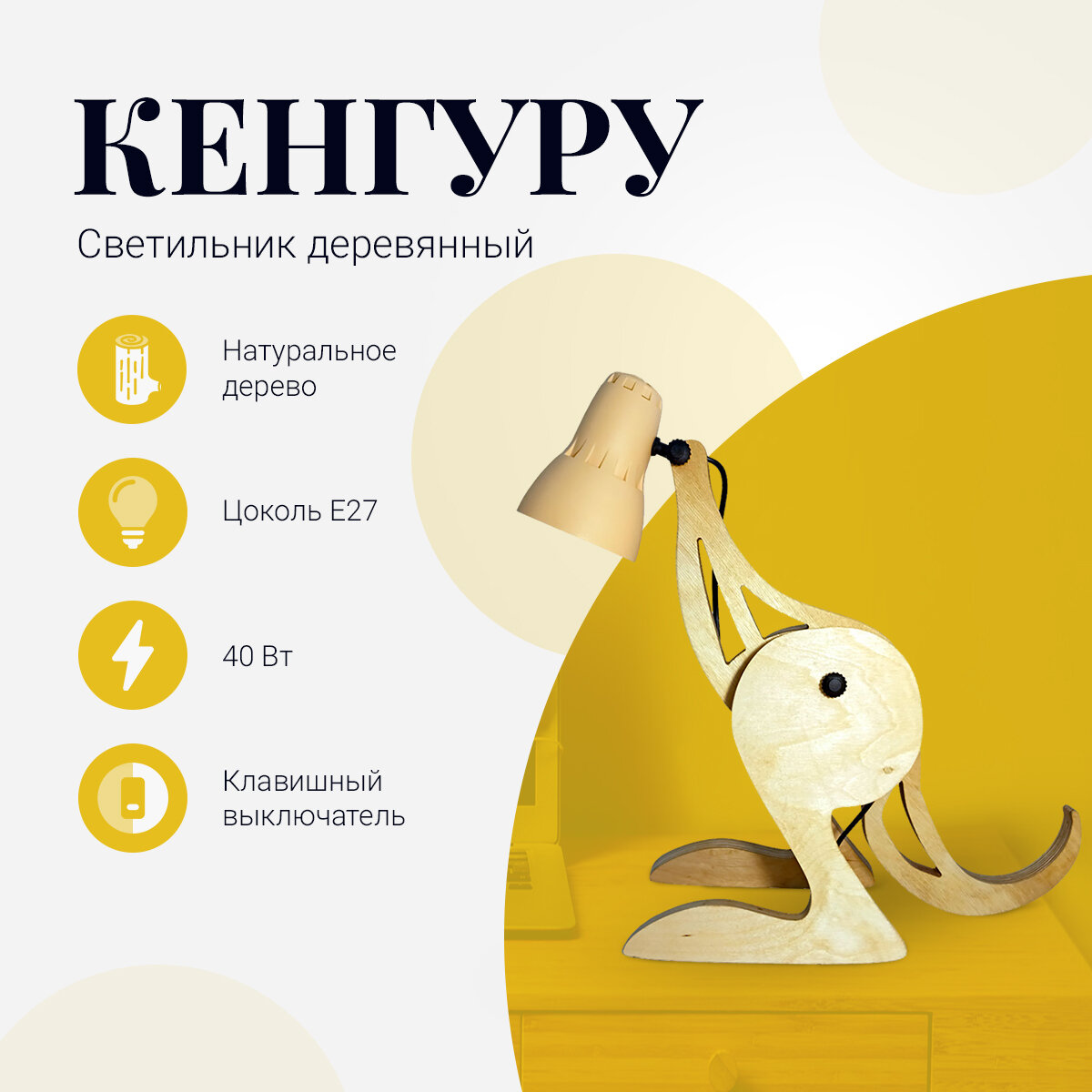 Светильник деревянный настольный детский Трансвит «Кенгуру», лампа интерьерная для детской комнаты, Е27, 40вт: сравнение цен, характеристики, фото, актуальное наличие и цены.