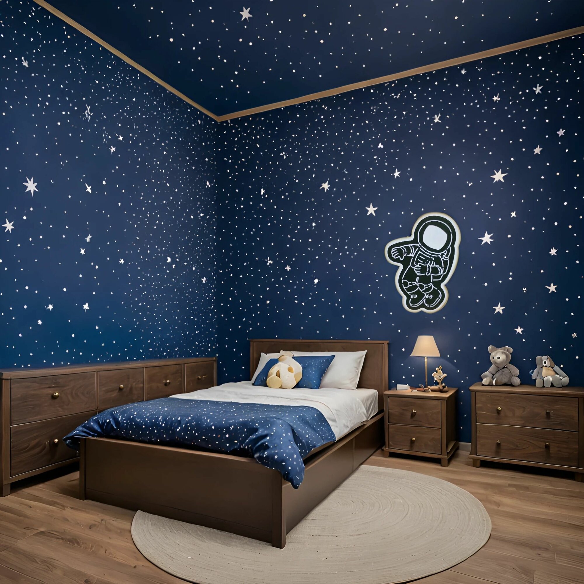 Купить Светильник детский, космонавт настенный 280х200 мм, питание от сети, холодный 6К с доставкой по всей России.