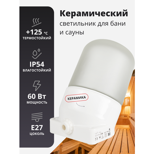 Светильник влагозащищенный, керамический, термостойкий предназначен для установки в бане и сауне. Светильник изготовлен с целью установки в агрессивной среде с высокими перепадами температуры и влажности, поэтому отлично подходит для установки в бане и сауне, а также в других помещениях с высокой влажностью (ванная, хамам, мансарда, балкон, сарай, подвал, кладовая) или на улице.