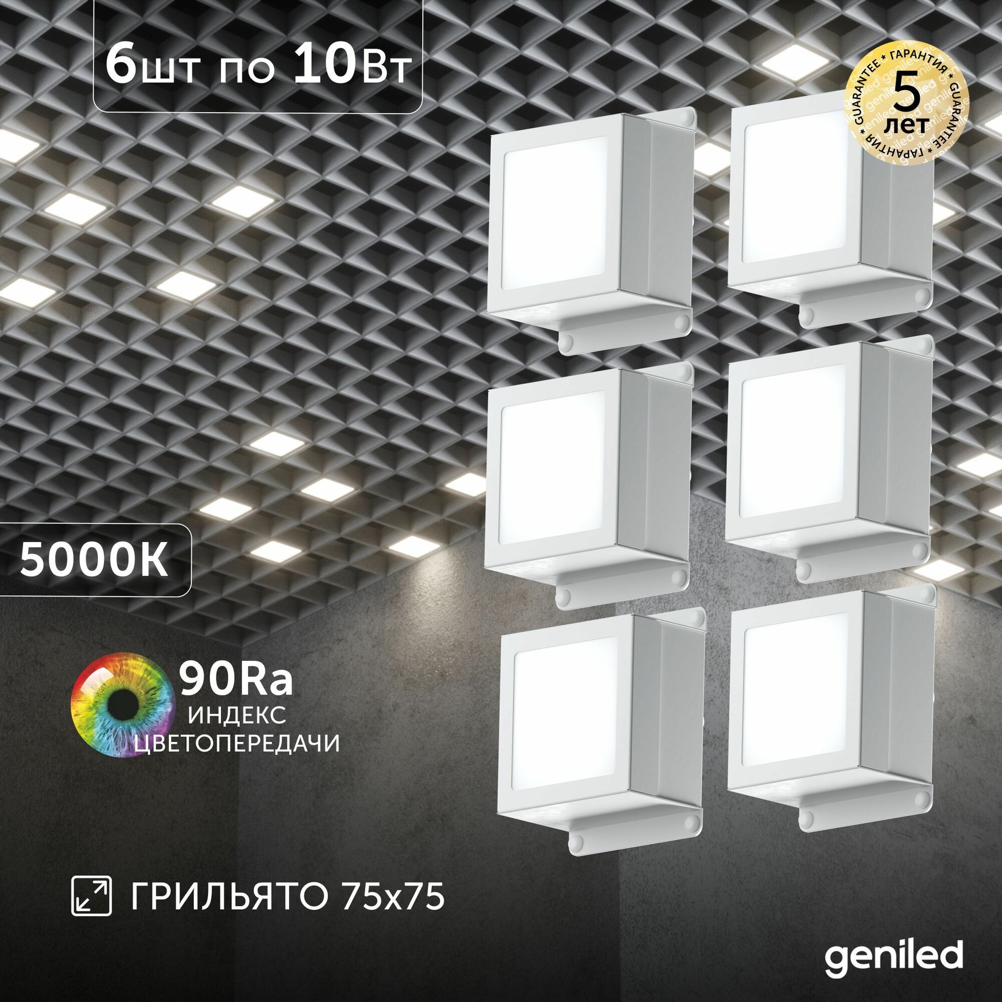 Светильник для грильято 6шт 10Вт 5000К для ячейки 75×75 мм Griliato Tetris встраиваемый: сравнение цен, характеристики, фото, актуальное наличие и цены.