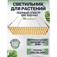 Светильник для растений диммируемый “quantum board” (квантум борд) QBD 1500 MAX . С переключателем красных диодов (Switch), который используют профессионалы во время цветения растений. Режимы; Veg и Bloom. Питание от сети 220 Вольт, потребляемая мощность 145-150 Ватт. Подойдёт для выращивание рассады, микрозелени в темных помещениях и в боксах. Эффективен для больших растений в вегетативный период, в период цветения и развития плодов. Супер яркий и экономичный аппарат с высоким КПД. Размер алюминиевой площадки; 450*300*2 мм. Оснащён хорошим драйвером с регулировкой яркости в алюминиевом корпусе. Имеет 288 диодов, в том числе ультрафиолетовые диоды, синие и красные, фирмы Самсунг модель LM281b+, 165 лм/Вт , с длинной волны; от 450-660 нанометров, 3000-5000К, 200 моль/с. Эффективно покрывает до 3 кВм, площади. Безопасное расстояние 25см, выше растений. Светильник оснащен диодами теплого дневного света, синими и красными. Срок службы диодов Самсунг 50 000 часов, без деградации. Будет работать как единственный источник света для растений, в темных помещениях. Не требует дополнительного охлаждения кулером и, как следствие, более экономичен и не шумит. Наш светильник превосходит по параметрам известные аналоги и не дорогой. Вы можете использовать данное устройство в любые периоды развития растений: от рассады до цветения и плодоношения. Универсальное крепление позволяет разместить светильник в любом удобном месте/