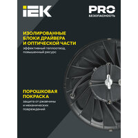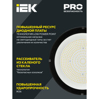 Светильник для высоких пролетов промышленный хайбей ДСП 4025 100Вт 5000К IP65 HIGH BAY Производитель: IEK Артикул производителя: LT-DSP0-4025-100-50-K02 Светильники ДСП для высоких пролетов предназначены для общего освещения производственных и складских помещений, спортивных залов, катков, торговых и выставочных площадей, гипермаркетов, в том числе помещений с высоким содержанием пыли и влаги. Обеспечивают равномерную засветку при размещении на большой высоте и значительно экономят электроэнергию. Преимущества: Высокая эффективность 150 лм/Вт для эффективного расхода электроэнергии Широкий диапазон рабочих напряжений: 110–277 В Защита от микросекундных помех: 4 кВ Простой монтаж на подвес, компактная конструкция Порошковая покраска, надежная защита от ржавчины и механических воздействий, сохранение первоначального внешнего вида на протяжении всего срока службы Закалённое силикатное стекло обеспечивает безопасную эксплуатацию и монтаж В комплекте рым-болт для удобства установки Изолированные блоки драйвера и оптической части обеспечивают увеличивают ресурс светильника Технология LOW POWER POINT улучшает теплоотвод за счет увеличения количества диодов Тип изделия: Светильник Сфера применения: промышленное освещение