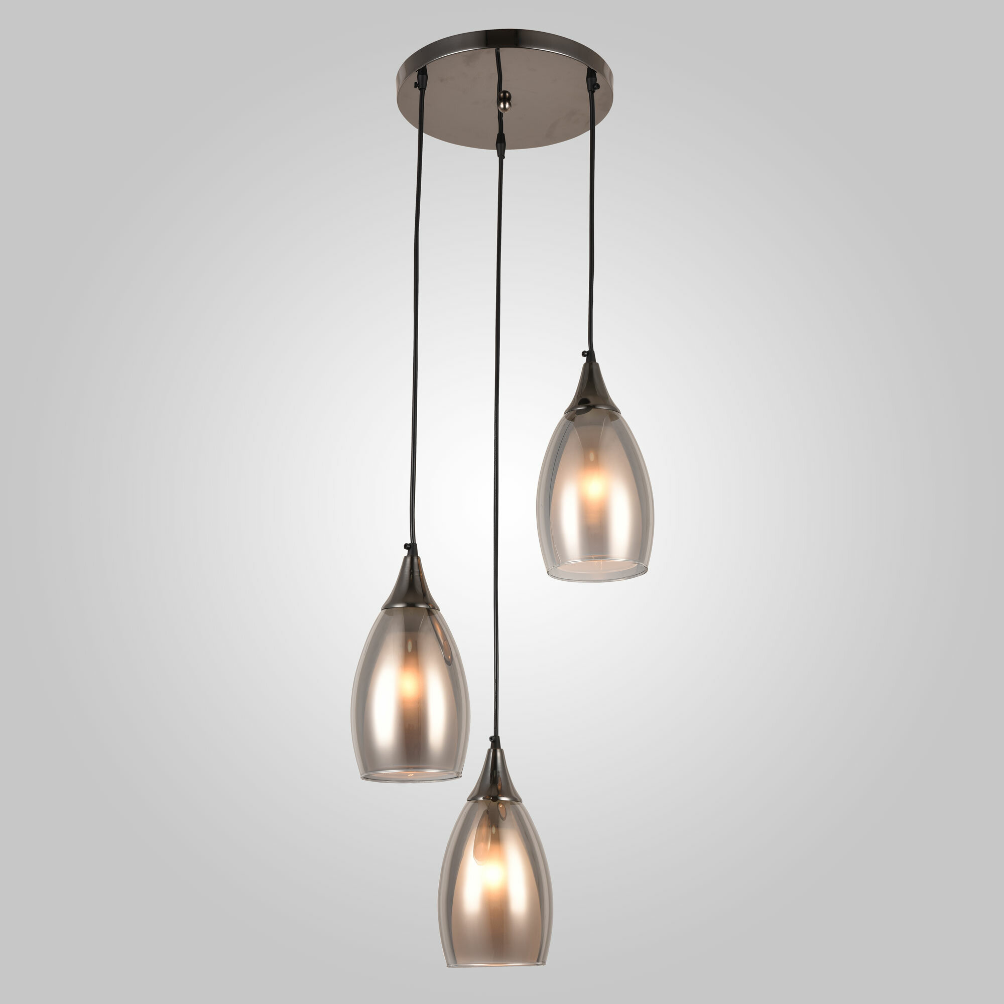 Подвесной светильник со стеклянными плафонами 50085/3 в цвете черный жемчуг предназначен для создания дополнительного освещения и акцентной подсветки в современных интерьерах. Светильник со сменными лампами E14 создаст качественное освещение на площади 8 кв. м. и подсветит рабочие зоны на кухне, в гостиной и других местах. Светильник со стеклянными плафонами оснащен системой регулировки высоты подвеса, позволяющей размещать изделие на разных уровнях, уменьшая или увеличивая угол рассеивания светового потока. Данный светильник легко устанавливается на потолке при помощи монтажной планки.