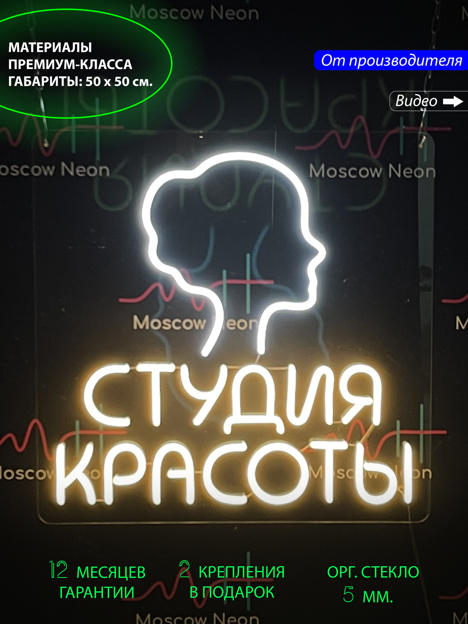 | Комплектация | ✦ Материал: гибкий LED. Толщина неона: 6 мм. ✦ Подложка — прозрачный акрил (оргстекло) 5 мм. ✦ Блок питания с «вилкой» ✦ Длина сетевого кабеля — 3 метра ✦ Типы креплений: прозрачная леска и наноскотч ✦ Варианты установки: на стену / на стол ✦ Инструкция по эксплуатации ✦ Гарантийный талон |