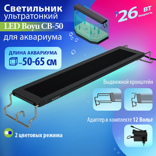 Светильник LED Boyu CB-50 26Вт 50 см ультратонкий для аквариума белый и синий свет: сравнение цен, характеристики, фото, актуальное наличие и цены.