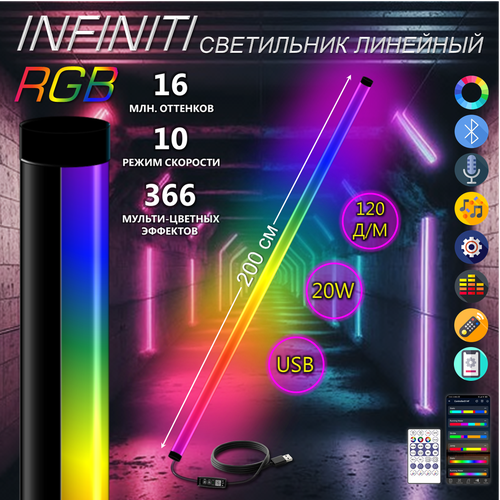 Линейные светильники RGB серии INFINITI – верное решение для тех, кто ищет надежный источник света. Они отлично подойдут в качестве дополнительной подсветки рабочих зон, кухни или витрин. Возможность управления через пуль ДУ до 10 штук позволяют использовать светильники в качестве основного света. Вы можете создать самые разнообразные варианты освещения, которые будут не только функциональными, но и декоративными. Например, подойдет для акцентной подсветки зеркал, картин и книжных полок. Яркий и равномерный свет особенно важен для рабочих зон. Управляются через пульт ДУ и через приложении на телефоне через Bluetooth.