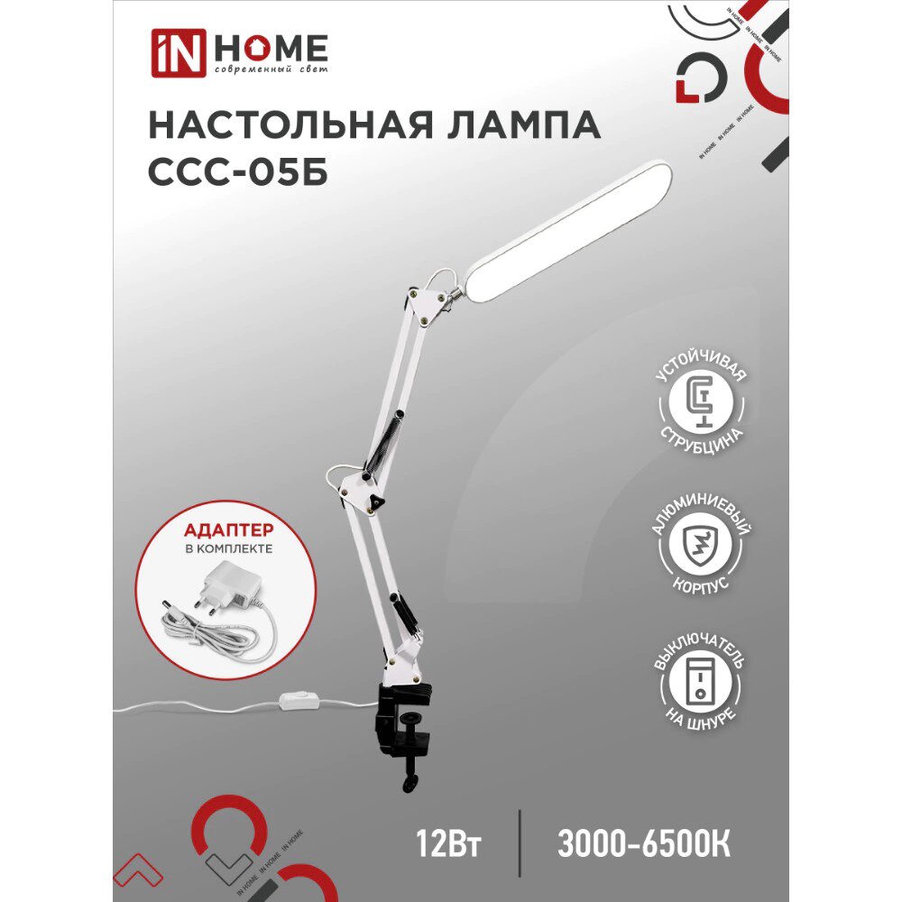 Купить Светильник на струбцине IN HOME Кио 12 Вт 6500 К 500 Лм, USB белый с доставкой по всей России. Светильник на струбцине IN HOME Кио 12 Вт 6500 К 500 Лм, USB белый: сравнение цен, характеристики, фото, актуальное наличие и цены.