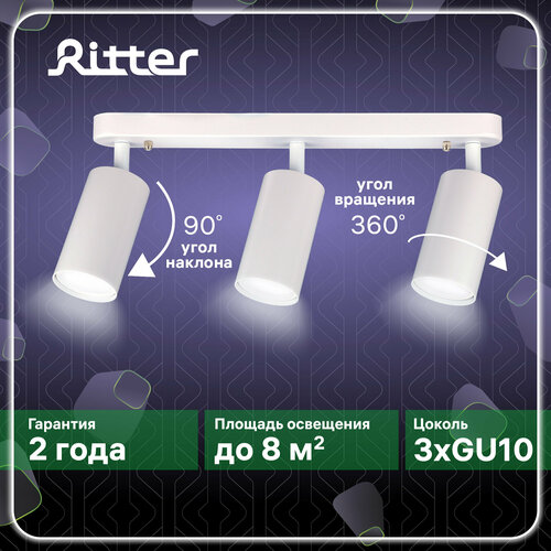 Накладной светильник Ritter , Arton, поворотный, цилиндр, 350x55x160мм, 3хGU10, алюминий, белый, 59990 6,: сравнение цен, характеристики, фото, актуальное наличие и цены.
