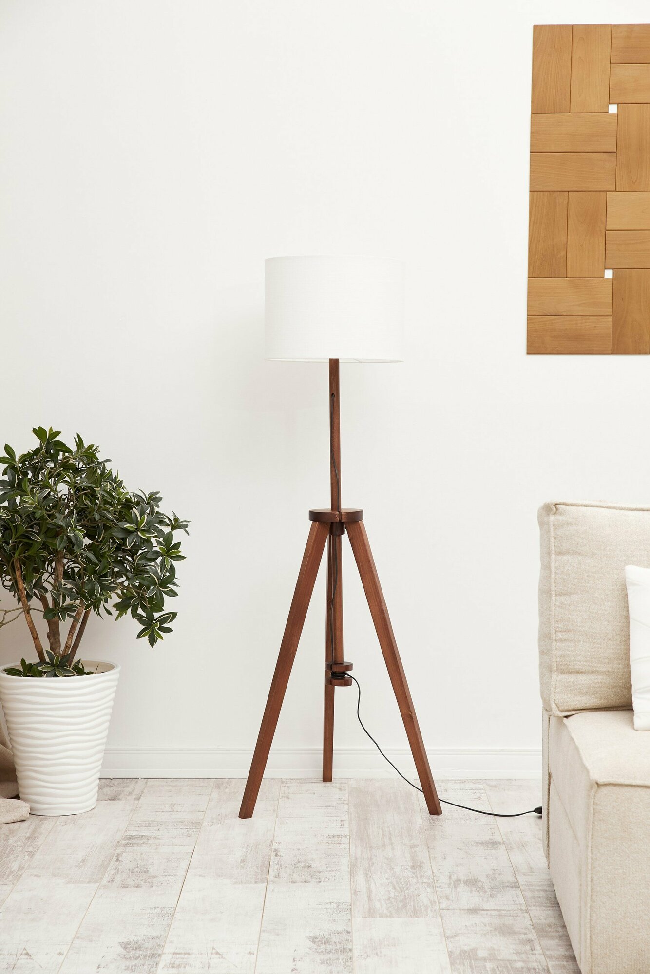 Светильник напольный/ Торшер «Валерий-2″/ Светильник интерьерный/ основание темно-коричневое, белый абажур