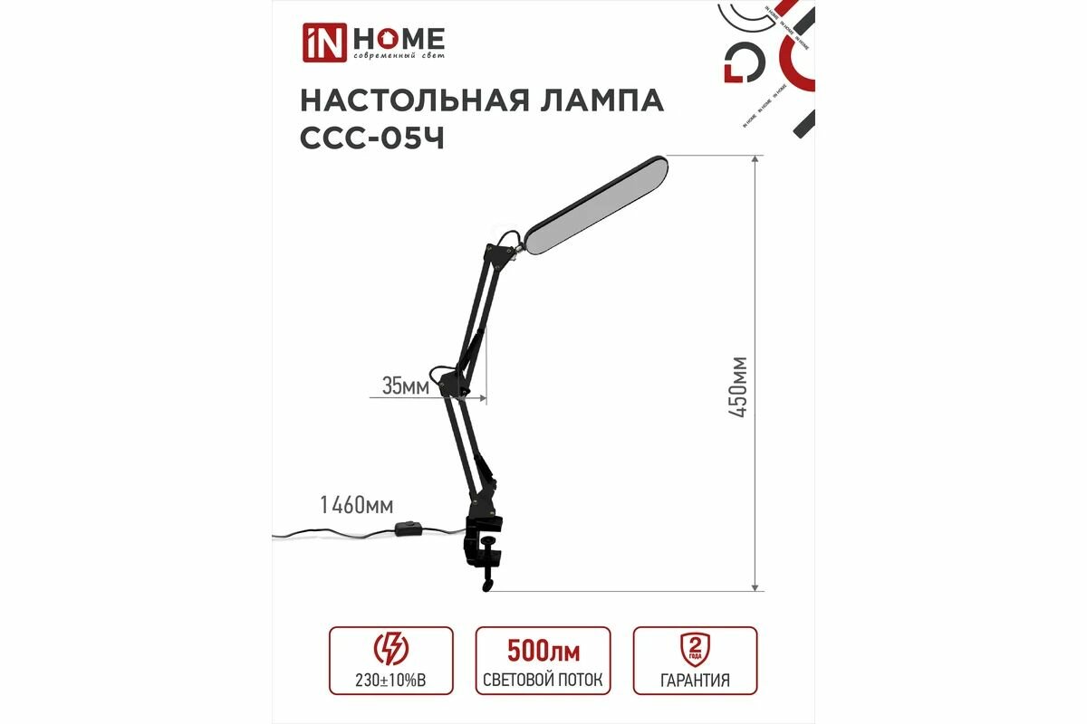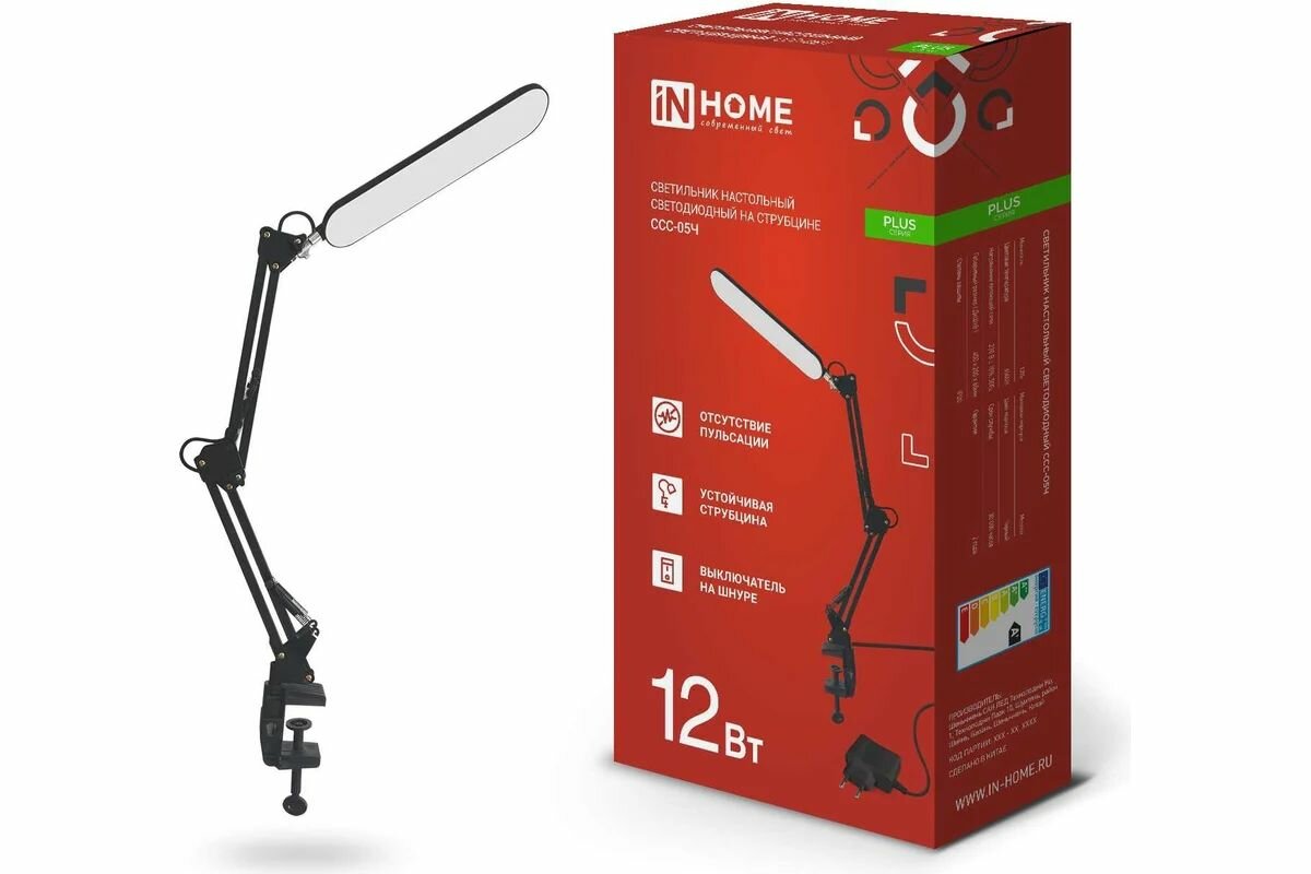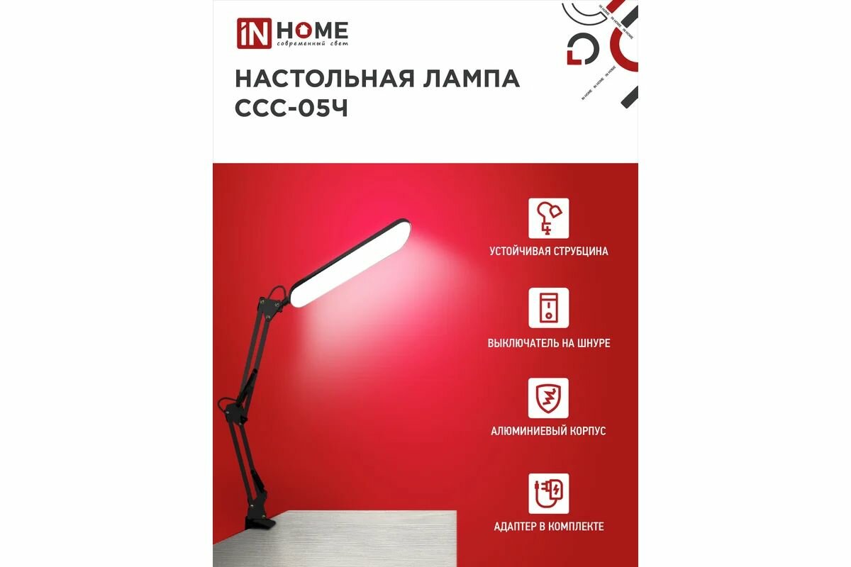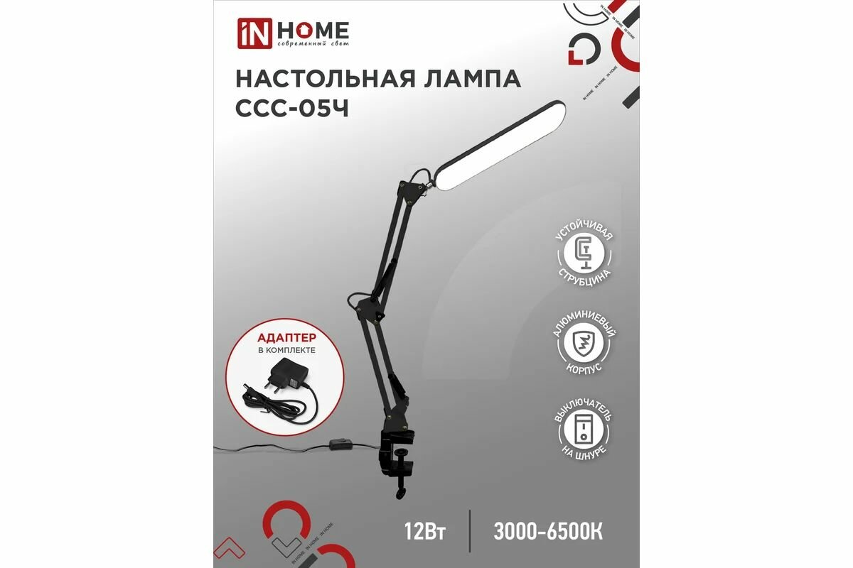 Светильник наст на струбцине сд ССC 05Ч 12Вт 6500К 500Лм, USB разъем, с адаптером черный IN HOME (1/: сравнение цен, характеристики, фото, актуальное наличие и цены.