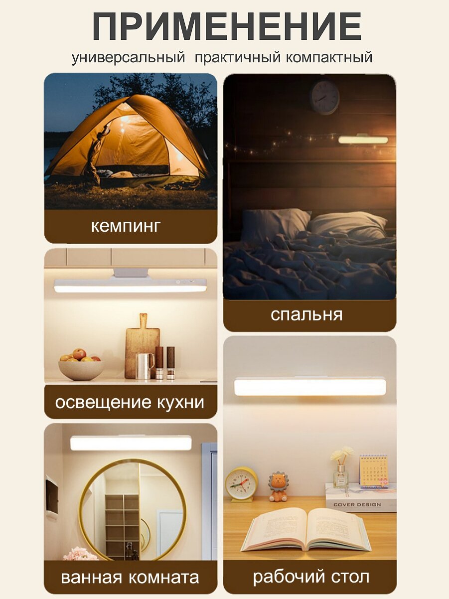 Настенный светильник LED беспроводной со встроенным аккумулятором и магнитным поворотным креплением и пультом ДУ станет оптимальным решением для дополнительной подсветки плохо освещенных мест Вашего дома, квартиры, или в офисе. Светодиодный светильник станет настоящей находкой для подсветки спальни, детской, кухни, гардеробной, ванной комнаты, для зеркала, шкафа, или комода и его можно перенести в любое место. Забудьте про провода и батарейки, для его установки они Вам не потребуются, лампа работает от встроенного аккумулятора и благодаря ему, может светить на максимальной яркости до 3-х часов непрерывно, а на минимальной яркости, в режиме ночник, до 10-ти часов. Крепится к любой поверхности на магнитах. Свет можно выбирать от теплого, до холодного. Яркость так же можно регулировать. Для его зарядки, достаточно снять его с магнитного крепления и зарядить от любого прибора с USB выходом, будь то адаптер, повер банк, ноутбук, или телевизор. В нем 26 ярких светодиода. Подвесной светильник – это так же стильное решение для любого интерьера. Его простой, но элегантный дизайн добавит нотку изысканности в любую комнату. Если вы хотите создать уютную и гостеприимную атмосферу в своем доме, то наша лампа - идеальный выбор. Он прекрасно сочетается с различными стилями интерьера, от современного до классического, и поможет создать уникальную атмосферу и украсить дом. Можно использовать, как накладной, а также может быть использован для декоративного освещения в лофте, в ванной или на кухне. Наша прикроватная лампа равномерно освещает помещение, вы сможете осветить даже самое темное помещение.