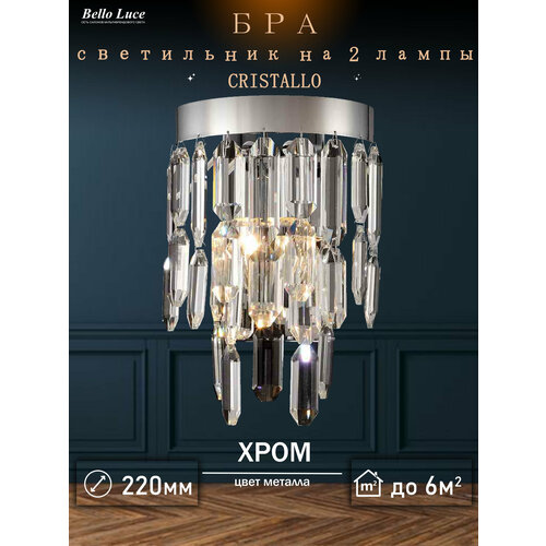 Купить Светильник настенный Cristallo хром с прозрачными хрустальными подвесками, бра на 2 лампы E14 с доставкой по всей России. Светильник настенный Cristallo хром с прозрачными хрустальными подвесками, бра на 2 лампы E14: сравнение цен, характеристики, фото, актуальное наличие и цены.