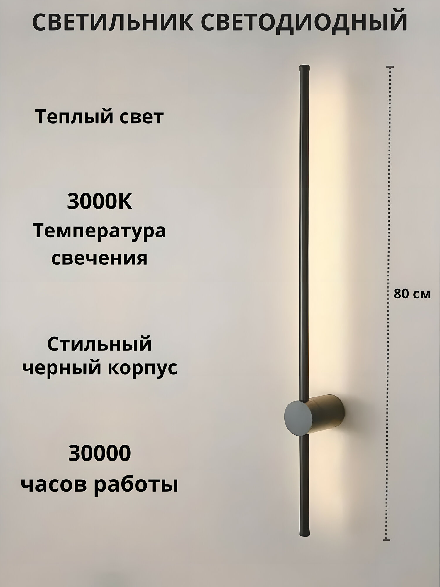 Линейный светодиодный светильник – лаконичная элегантность в вашем доме. Современные интерьеры требуют не просто света, а продуманных решений. Этот настенный светильник длиной 80 см – находка для тех, кто ценит минимализм, стиль и функциональность. Простая геометрия линий делает его универсальным элементом любого пространства. Бра можно разместить горизонтально, вертикально или под углом, создавая выразительные световые акценты. Он легко впишется в классический или современный интерьер. Свет, который преображает пространство. Этот линейный светодиодный светильник станет гармоничным дополнением для разных комнат: – Гостиная – добавит мягкий рассеянный свет и подчеркнет зонирование – Спальня – уютное прикроватное бра у кровати, создающее атмосферу отдыха – Детская – удобный ночник с приятным свечением – Кабинет – комфортный свет для работы без лишней нагрузки на глаза – Прихожая и коридор – эффектная настенная подсветка и стильное освещение зеркала. – Коммерческие пространства – идеален для кафе, студий и салонов. Светильник не требует установки лампочек – светодиоды встроены в корпус. Акриловый рассеиватель мягко распределяет свет, создавая комфортную обстановку. Он подходит как для основного освещения, так и для создания декоративных композиций – несколько светильников, размещенных на разной высоте, превращают стену в произведение искусства. Черный корпус смотрится элегантно, создавая выразительный контраст или поддерживая сдержанную монохромную гамму. Такой современный LED светильник – удачное решение для тех, кто ценит дизайн и уют. Он станет прекрасным подарком на новоселье, день рождения, свадьбу или юбилей. Уместен в доме, квартире, загородном коттедже, а также в современных офисах и творческих студиях. Этот светильник создан для тех, кто ценит красоту, стиль и продуманные детали.