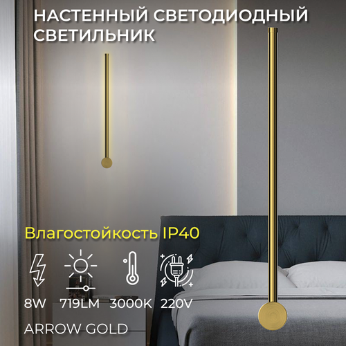 Светильник настенный Ledron ARROW Gold, 8W. Бра для спальни, ванной, коридора: сравнение цен, характеристики, фото, актуальное наличие и цены.