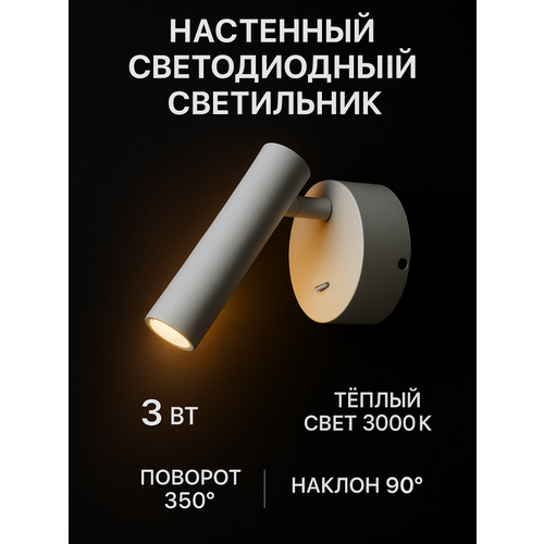 Светильник настенный поворотный с выключателем светодиодный FEDOTOV LED 3Вт 3000К, белый: сравнение цен, характеристики, фото, актуальное наличие и цены.