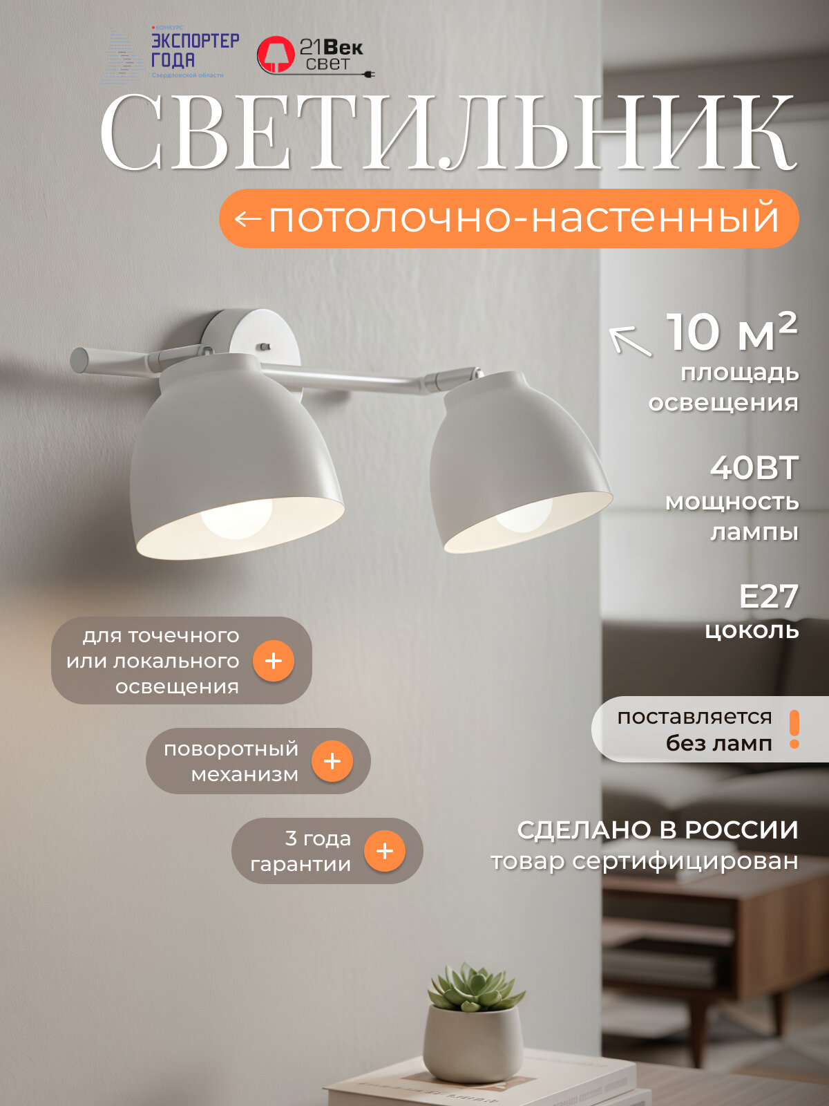 Светильник настенный Спот 21 Век свет Лофт 2 лампы Белый Е27, площадь освещения 10 м²: сравнение цен, характеристики, фото, актуальное наличие и цены.