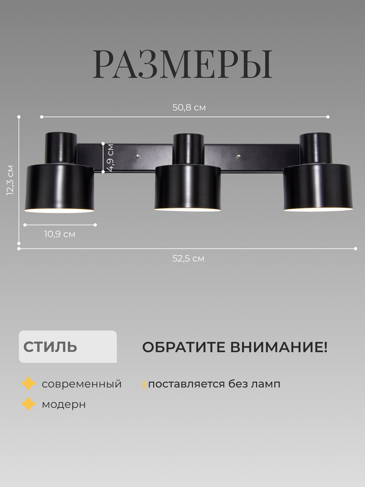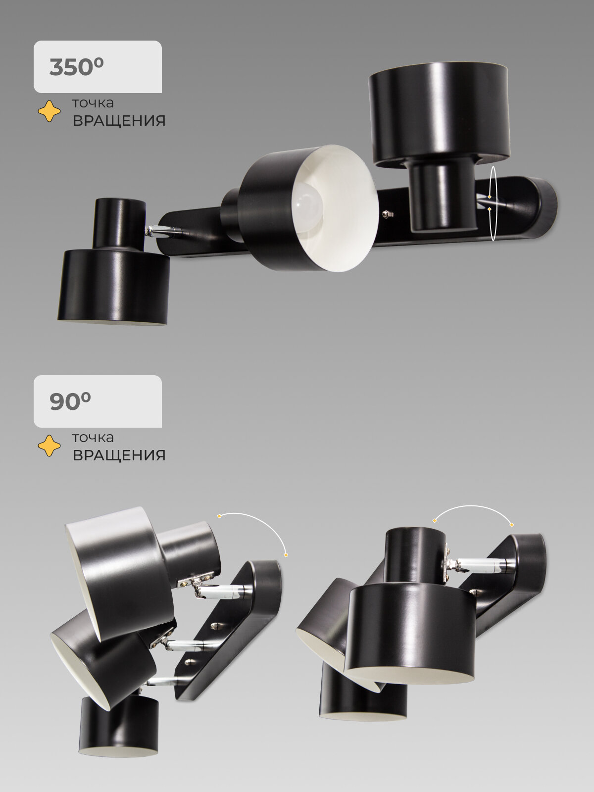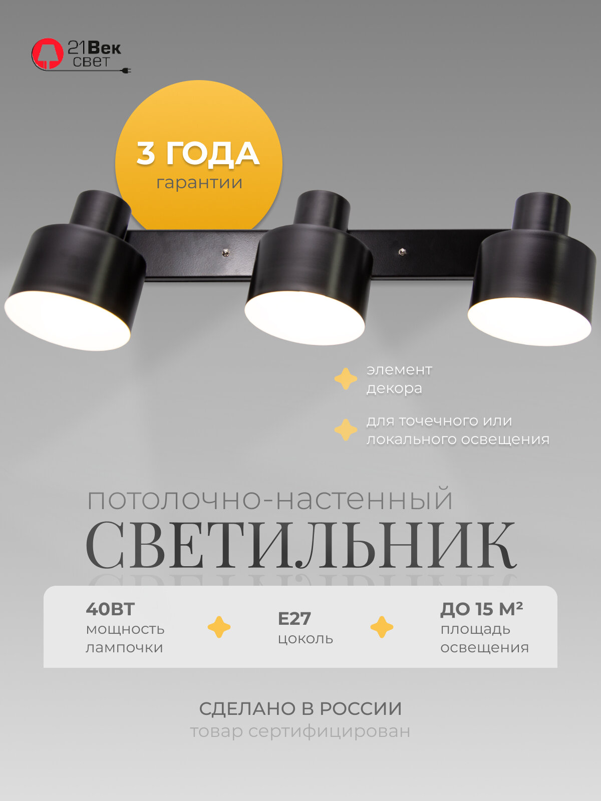 Светильник настенный Спот 21 Век свет Лофт 3 лампы Черный Е27, площадь освещения 16 м²: сравнение цен, характеристики, фото, актуальное наличие и цены.