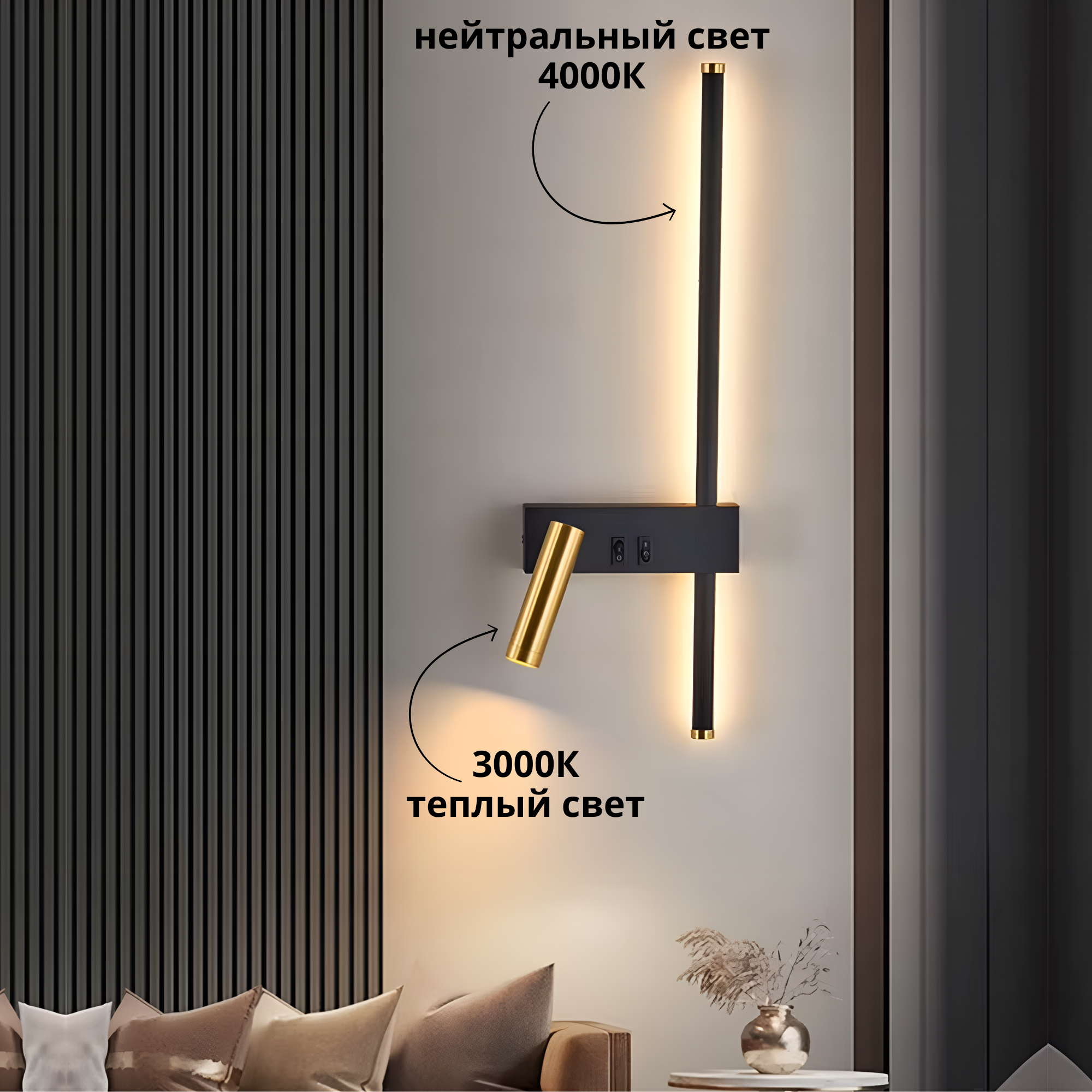 С мощностью 10 Вт, светильник обеспечивает яркое освещение при невысоком потреблении электроэнергии. Два независимых выключателя дают возможность управлять линейным и точечным освещением отдельно, что делает его очень удобным для разных задач: от чтения и работы до создания расслабляющей атмосферы.