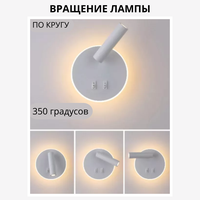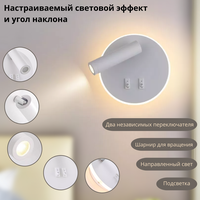 Светильник настенный светодиодный поворотный с выключателями FEDOTOV бра LED 6Вт 3000К, круглый белый
