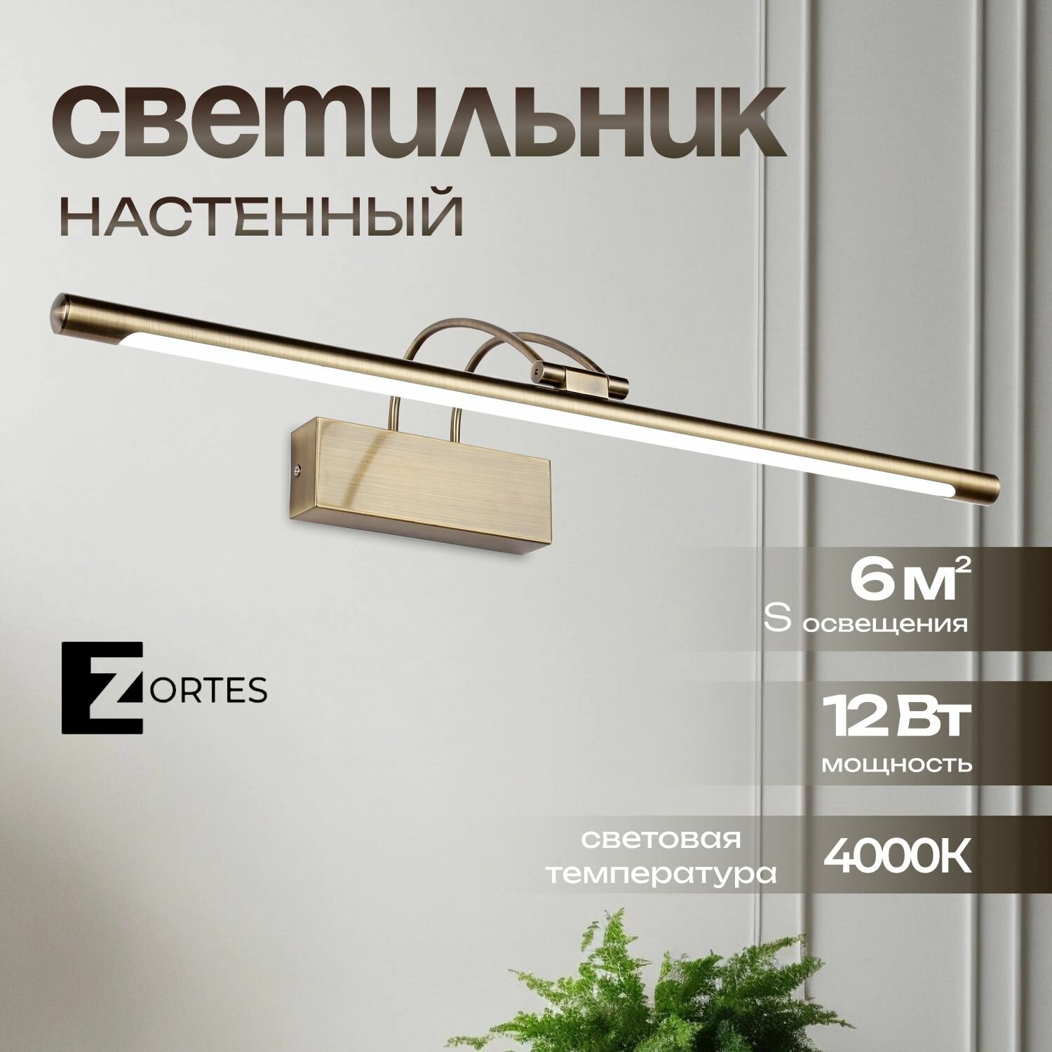 Настенный светильник Zortes MAESTRO, Мощность- 12Вт, Тип лампы -Встроенный LED, Цвет — Античная бронза, Длина 650mm: сравнение цен, характеристики, фото, актуальное наличие и цены.