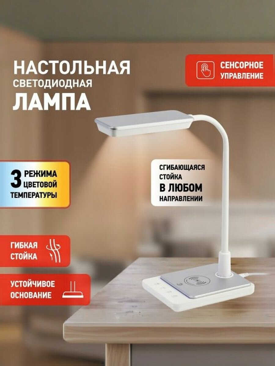Светильник настольный для школьника поворотный на подставке 10Вт светодиодный сенсорный с беспроводной зарядкой для телефона ЭРА белый: сравнение цен, характеристики, фото, актуальное наличие и цены.