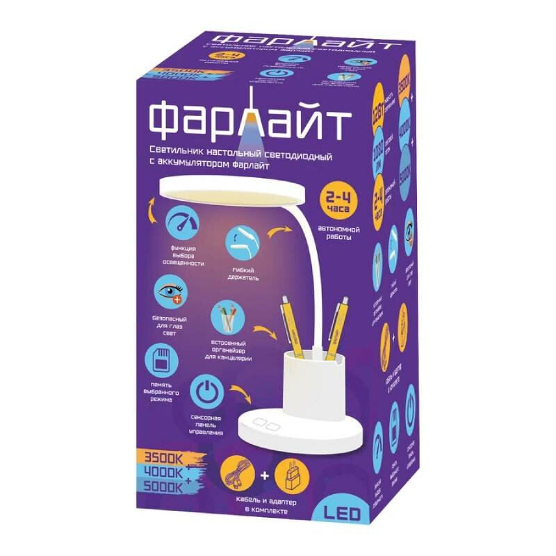 Купить Светильник настольный Фарлайт с органайзером, 12Вт, 3500К-5000К, белый с доставкой по всей России. Светильник настольный Фарлайт с органайзером, 12Вт, 3500К-5000К, белый: сравнение цен, характеристики, фото, актуальное наличие и цены.