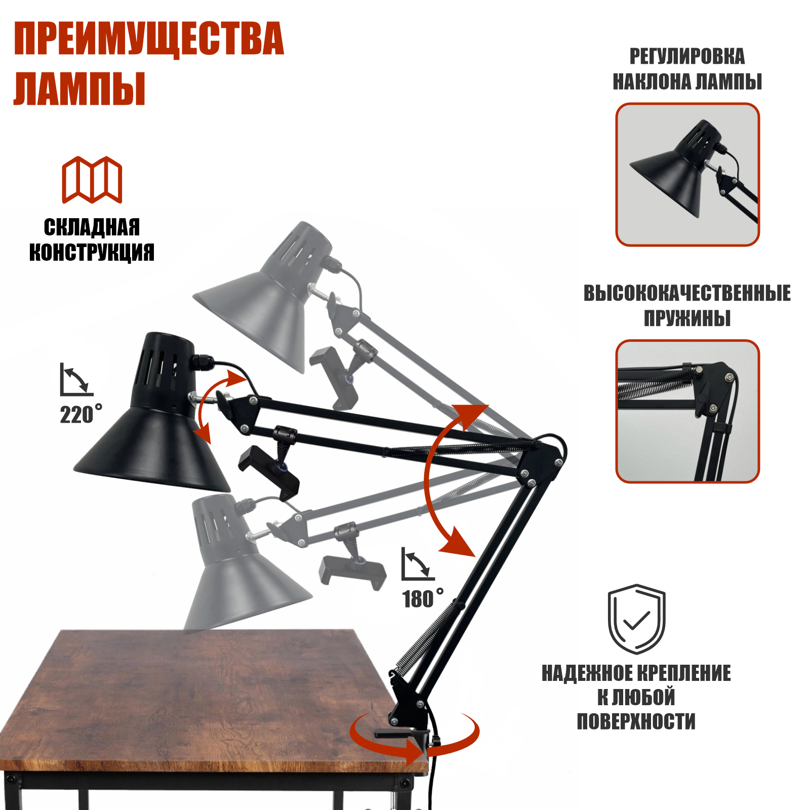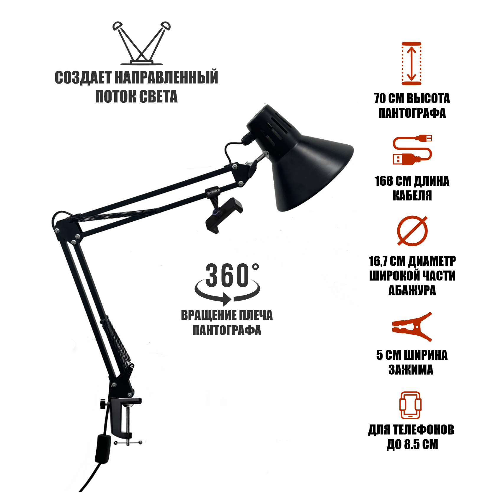 Светильник настольный NBS-1B-DT85, лампа чёрная на пантографе с держателем телефона до 85 мм на зажиме на усиленной струбцине: сравнение цен, характеристики, фото, актуальное наличие и цены.