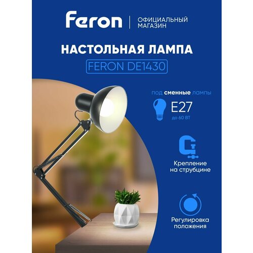 Купить Светильник настольный под лампу E27, max 60W, 230V на струбцине, черный, DE1430, Feron, 24233 с доставкой по всей России. Светильник настольный под лампу E27, max 60W, 230V на струбцине, черный, DE1430, Feron, 24233: сравнение цен, характеристики, фото, актуальное наличие и цены.