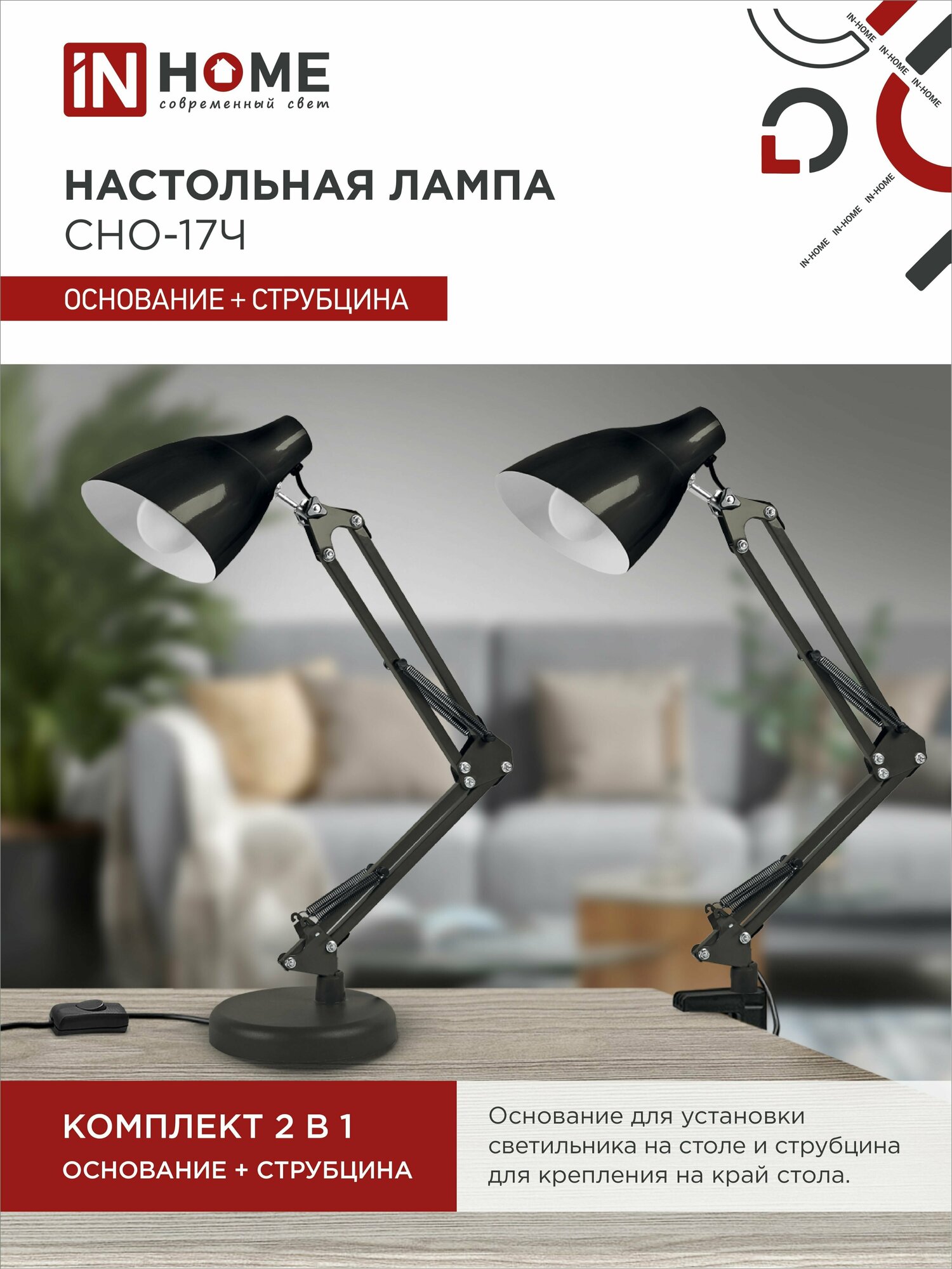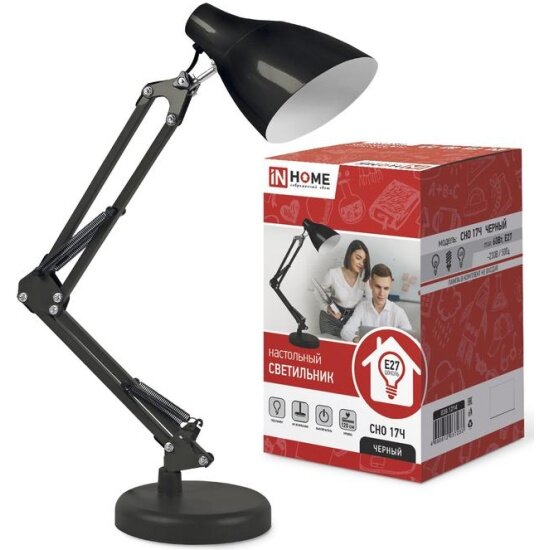 Светильник настольный СНО 17Ч 60Вт E27 230В под лампу на основании черн. (кор.) IN HOME 4690612037233: сравнение цен, характеристики, фото, актуальное наличие и цены.