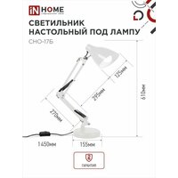 Светильник настольный СНО 17Б 60Вт E27 230В под лампу на основании бел. (кор.) IN HOME 4690612037226