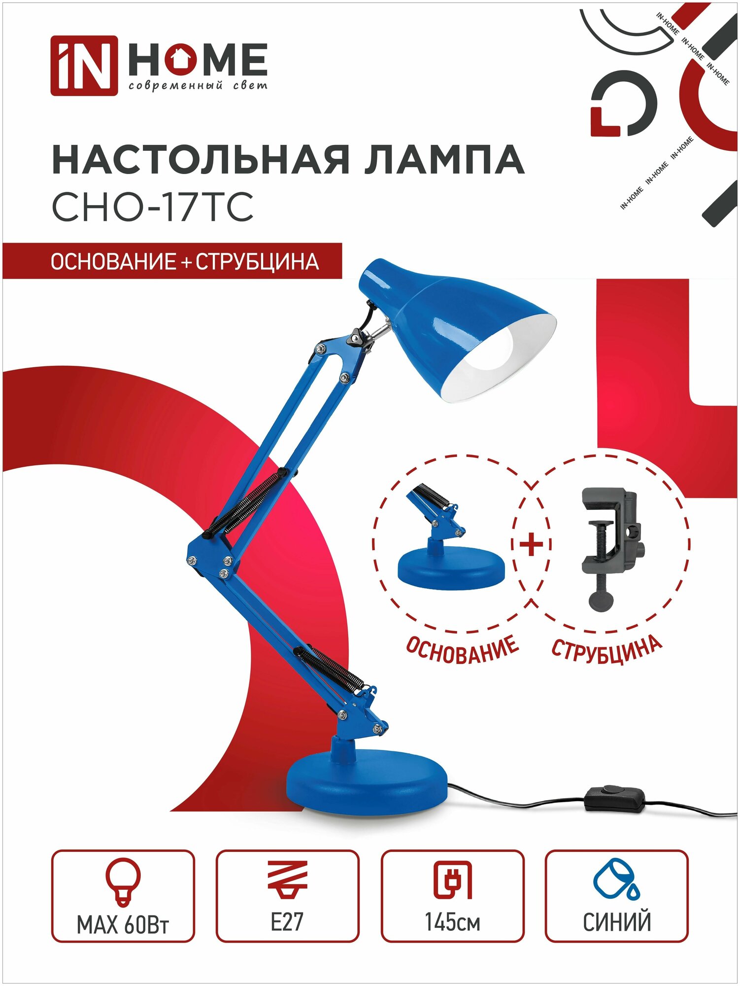 Светильник настольный под лампу на основании + струбцина СНО 17ТС 60Вт E27 230В синий IN HOME: сравнение цен, характеристики, фото, актуальное наличие и цены.